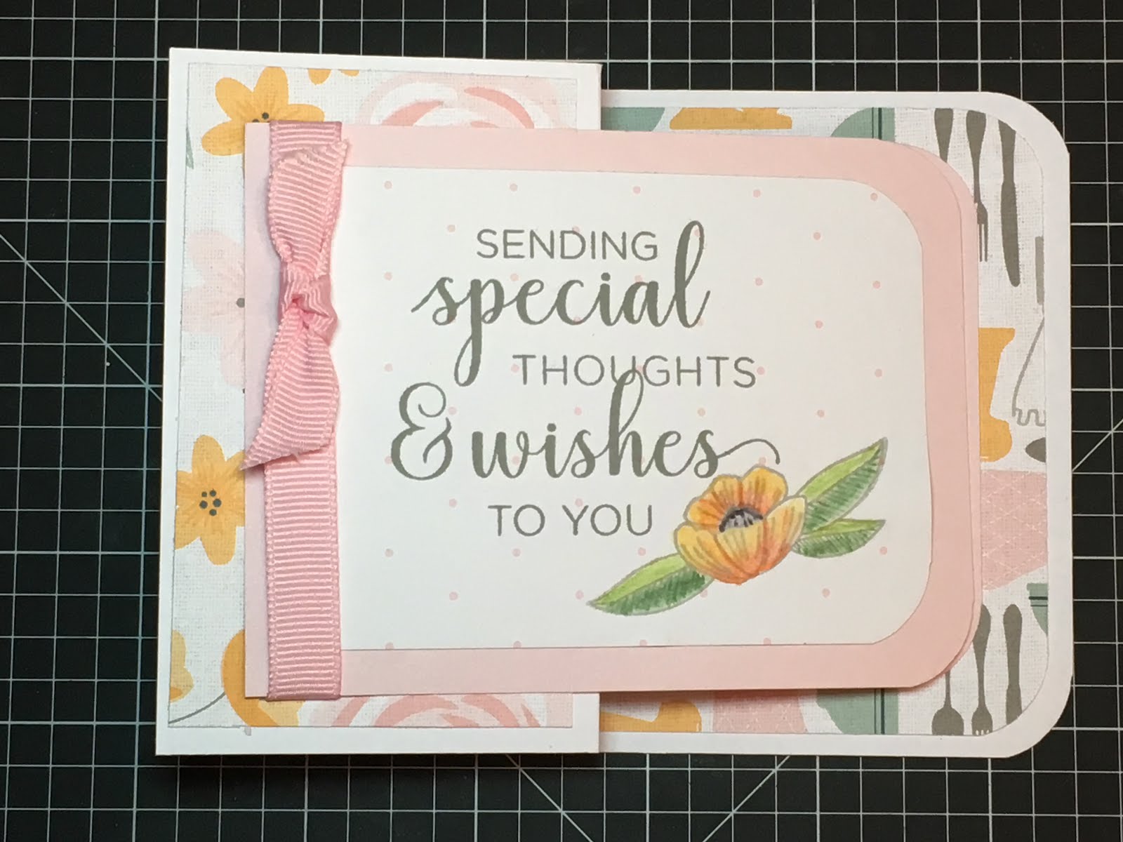 I really am enjoying the colors of the new Sugar Rush papers! So pretty! And I'm still ROCKING the Z-fold card! LOL I love how much paper and design shows and that this card stands up on it's own. Can't get over it!